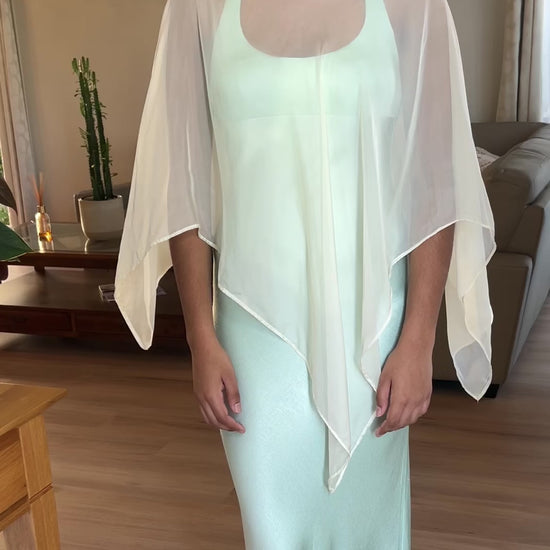 Pure silk with a subtle lustre. A bias-draped shawl perfect for all seasons.